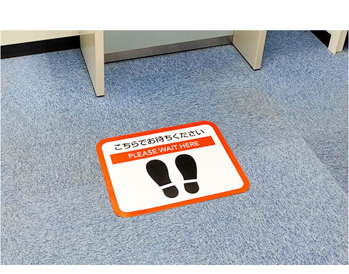 新型コロナウイルスの影響により定着したソーシャルディスタンス(フィジカルディスタンス)を示す、ゴムラバータイプのサインマットです。貼るタイプではなく置き型なので、設置場所を選びません。位置の変更、撤去も簡単です。重みがありシールタイプに比べ耐久性があります。