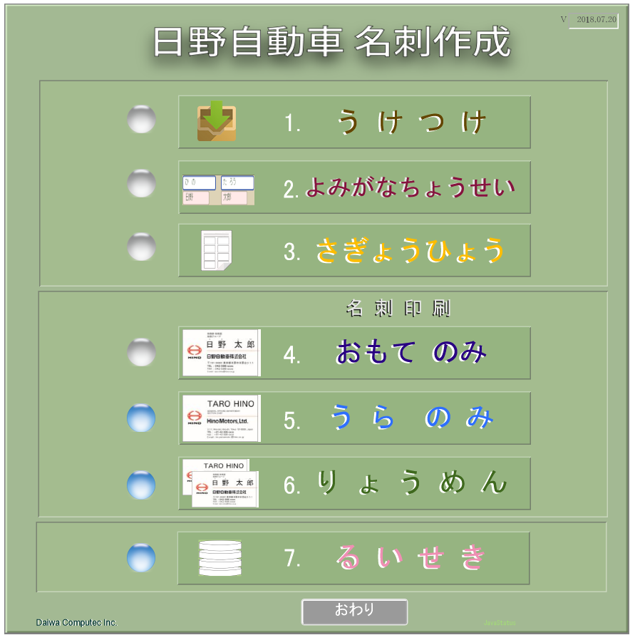 - 印刷開始までの一連の作業項目として、パソコン操作画面に7つのボタンを用意しました。