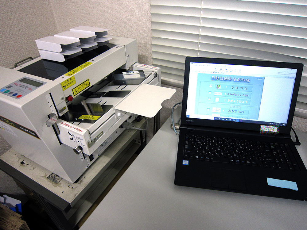 2008年5月に障がい者雇用の特例子会社として認定された日野ハーモニー様は、営業開始当初から親会社様をはじめとするグループ会社様全体向けの有力なサポート業務の一環として、名刺作成を検討し情報収集に努めてきたそうです。しかし初めて取り組む名刺作成業務をどのような流れでどのように行えばいいのか、障がいを持つ社員の方々でも出来る業務なのか、など様々な懸案事項があり、それらをすべて満足できるシステムになかなかめぐり会えなかったとのこと。