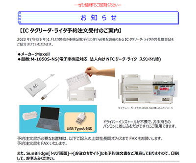 「当社の強みは、グループ会社の行政書士事務所と連携することで現場での困り事や要望、また法令や制度の変更に関する情報を素早くキャッチアップし、システムに反映できることです。お客様の要望を常に取り入れる姿勢で、税制や法令の改正では、施行当日にシステム提供を条件としていますので、2023年1月1日に改正された電子車検証のICリーダ・ライタの対応も施行日に行っております。」と家塚様。