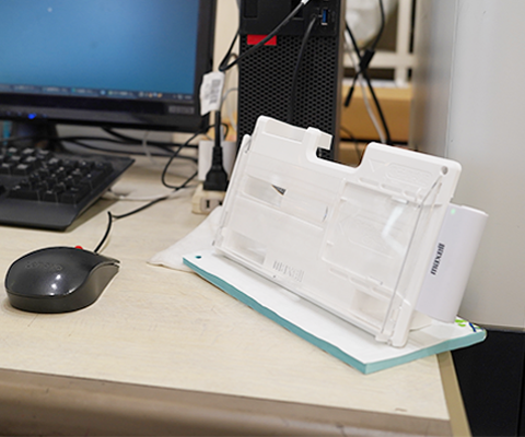 「2023年1月より導入された電子車検証はA6サイズと従来のものより小さく、机の上に置いて他の書類に紛れてしまったりすることが無いようにするためにはどうしようかと思っていたところ、マクセル製のリーダ・ライタは専用スタンドがあるとのことで、『お客様の個人情報である車検証を大切に取り扱える』との思いから採用いたしました。」